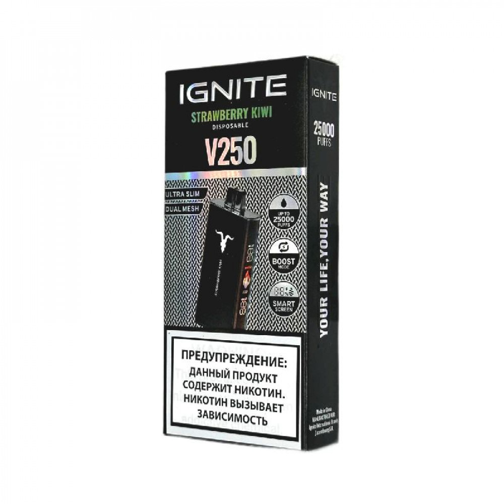 Электронная сигарета Ignite V250 Black 25000 - Strawberry Kiwi (Клубника киви) - купить в Орле