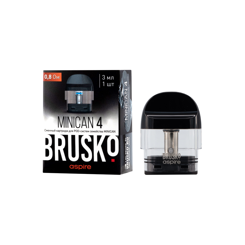 Сменный картридж Brusko Minican 4 черный на 3 мл с испарителем 0,8 Ом раскрывает вкус жидкости с солевым никотином. Сплющенный мундштук обеспечивает комфортную сигаретную затяжку. Регулировка обдува помогает получить нужное количество пара.